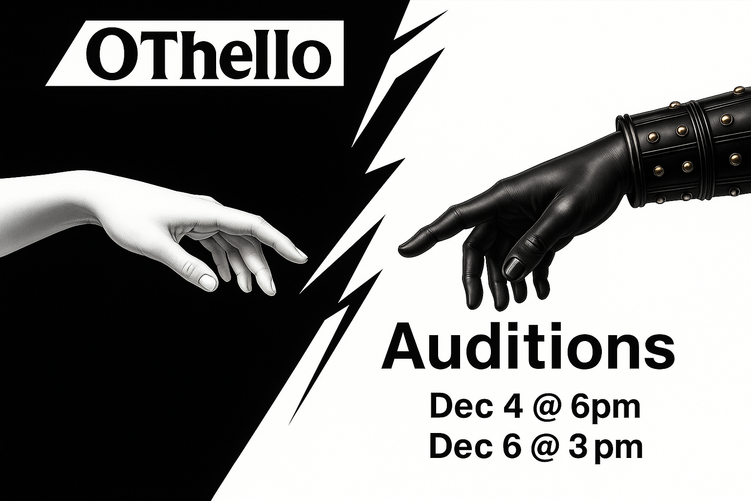 Attention all actors and actresses! We are thrilled to announce auditions for the tragic and intense Shakespearean drama, Othello.